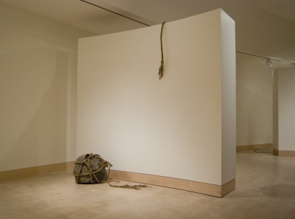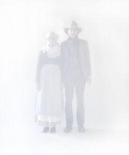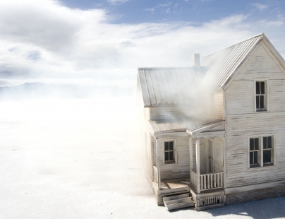 Shana McCaw and Brent Budsberg are a collaborative team with an twelve-year history working in sculpture, performance, and site-specific installation. Often incorporating scale models to explore deception and suspension of disbelief, a 19th century Midwestern farmhouse, frequently depicted in unlikely or impossible scenarios, has emerged as a central character in their work. Through it, they examine the psychology of place, ancestral memory, and the passage of time. More recently, McCaw and Budsberg have been performing for the camera, using photography and video to document the arduous toil of two pioneer-era characters that are the conceptual inhabitants of the farmhouse. Their photography also works to decontextualize the miniatures, exploiting the camera’s ability to eliminate scale cues and heighten the ambiguity of the subjects depicted. In exhibiting these works, structures often intersect or interact with the gallery walls and fixtures. This practice has led McCaw and Budsberg to an investigation of the gallery as an imperfect attempt to create a man-made void. The concept of the void is a thread that runs through much of their work, where subjects often appear to be fading in or out of the limits of perception.