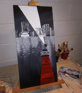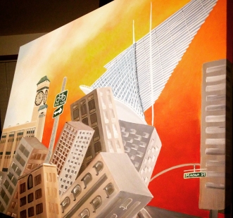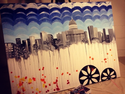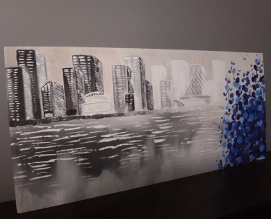 Heavy Duty Canvas 24"x48" - I love Milwaukee and painting pieces that represent the best of it. I painted this canvas for my previous employer. The tower you see on the left side while looking at it with the @ symbol is the organization's logo. This piece is currently displayed in their reception area.