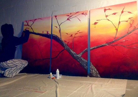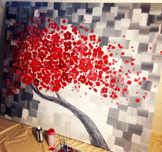 Heavy duty canvas 48" x 60" - The famous japanese tree (cherry blossom tree) this painting was chosen by one of my clients that is recently opening a new Japanese restaurant in the downtown area. The red cherry flowers light up any room! :)